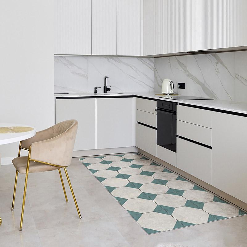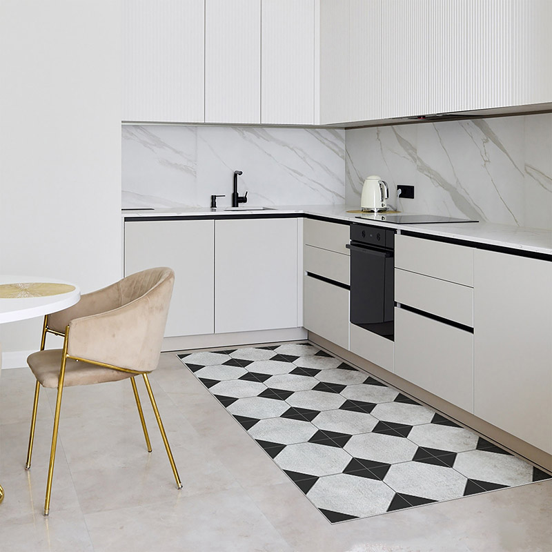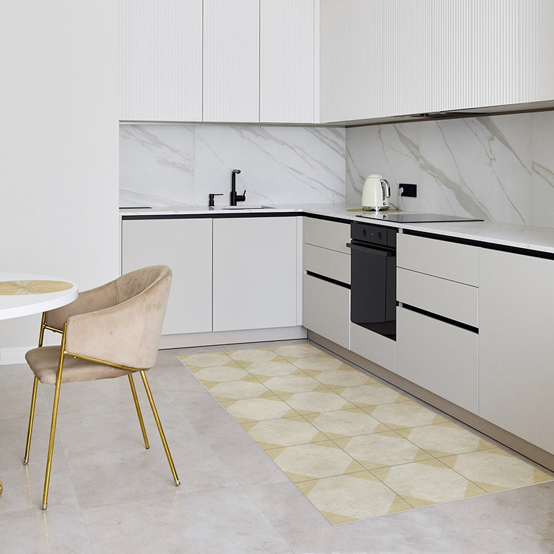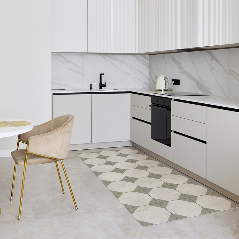 La alfombra vinílica Vintage Rombos tiene un diseño geométrico en tonos neutros y negro. Aporta elegancia, orden visual y un toque clásico renovado a cualquier estancia. Ideal para cocinas, recibidores, comedores o pasillos con estilo. Una opción decorativa, práctica y fácil de combinar.